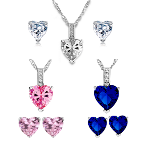 Love Heart Zircon Crystals Pendant Necklace and Earrings with Mother’s Day Message Box