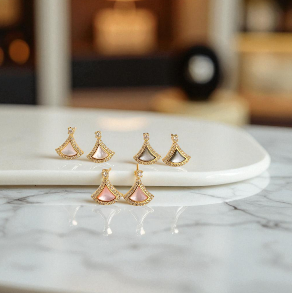 Inspired by classic Roman mosaics, the delicate fan-shaped silhouette is crafted in a lustrous 18K gold-plated and accented with brilliant pave crystals. A captivating central insert adds a pop of color, available in soft Pink, pristine White, or chic Grey. These versatile earrings are perfect for adding sophisticated charm and a touch of artistic luxury to your look, from day to night.