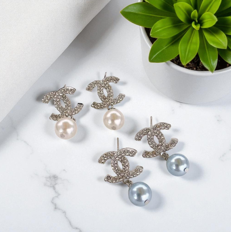 Elevate your style with the perfect balance of sparkle and sophistication. These captivating earrings feature the famous, crystal-encrusted interlocking logo paired with a beautiful hanging pearl. Available with a timeless White Pearl or a unique Blue Pearl, the delicate drop silhouette adds graceful movement and high-fashion appeal. Set in a brilliant silver tone, they are the ideal accessory for achieving an effortlessly chic look.