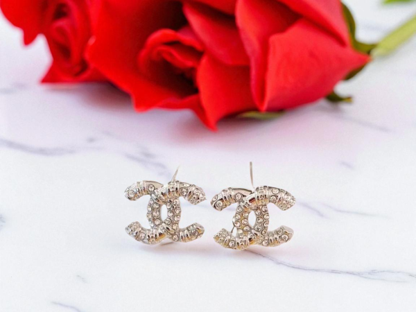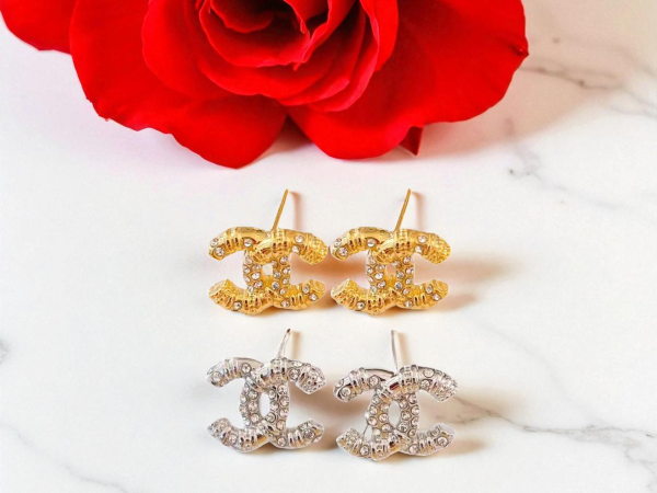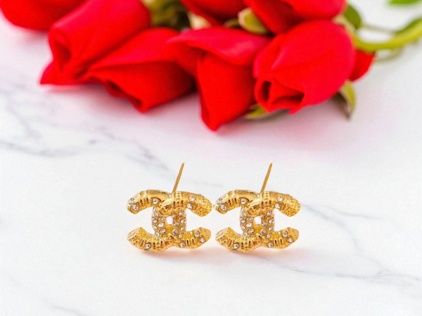 These designer-inspired earrings feature the iconic interlocking initials, detailed with a hammered, artisanal texture and dazzling premium AAAAA Zirconia paving. Crafted from high-quality brass, they are finished with a luxurious plating of either radiant Yellow Gold or sophisticated White Gold. These elegant studs add instant, high-fashion impact to any ensemble.
