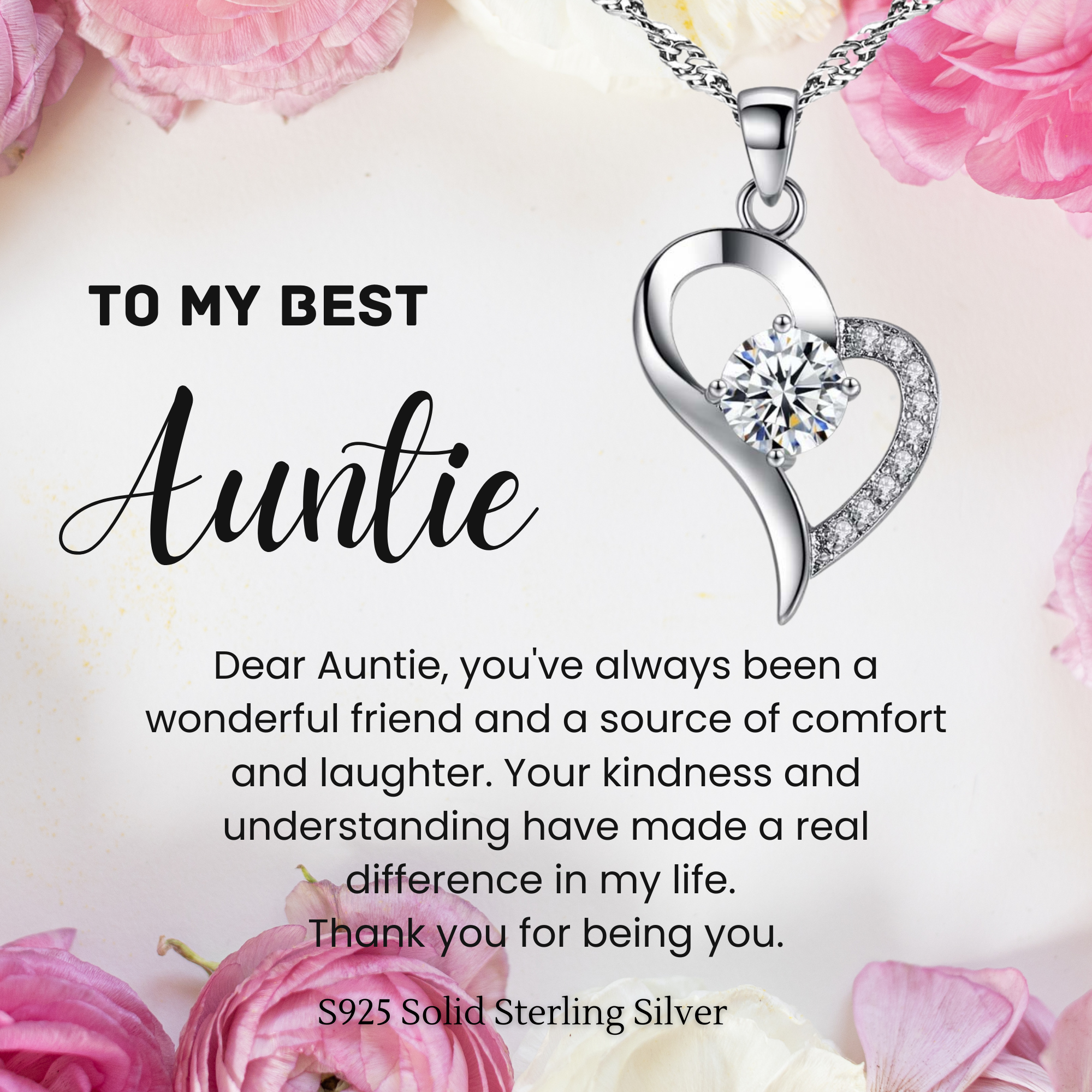 S925 Sterling Silver Heart C/Z Pendant Necklace with Message Card For Auntie