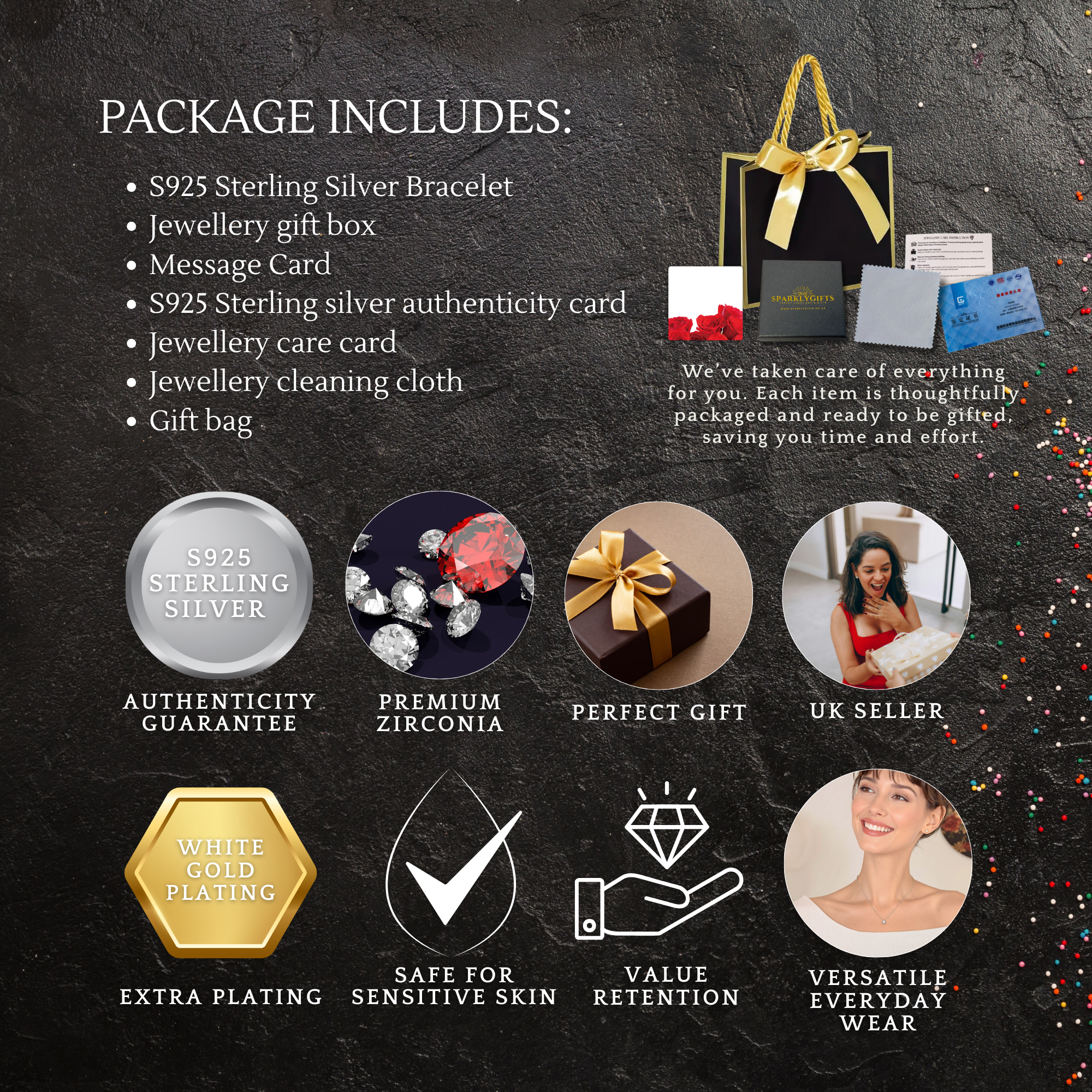 • Complete Ready-to-Gift Presentation: Looking for a gift that will truly touch her heart? The package includes everything you need for a perfect moment—your Personalised Message, Jewellery Gift Box, Care Card, Cleaning Cloth, and Gift Bag—saving you time and effort.