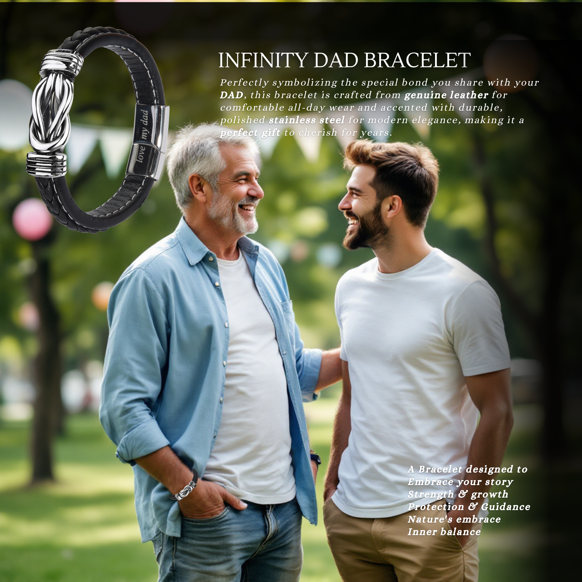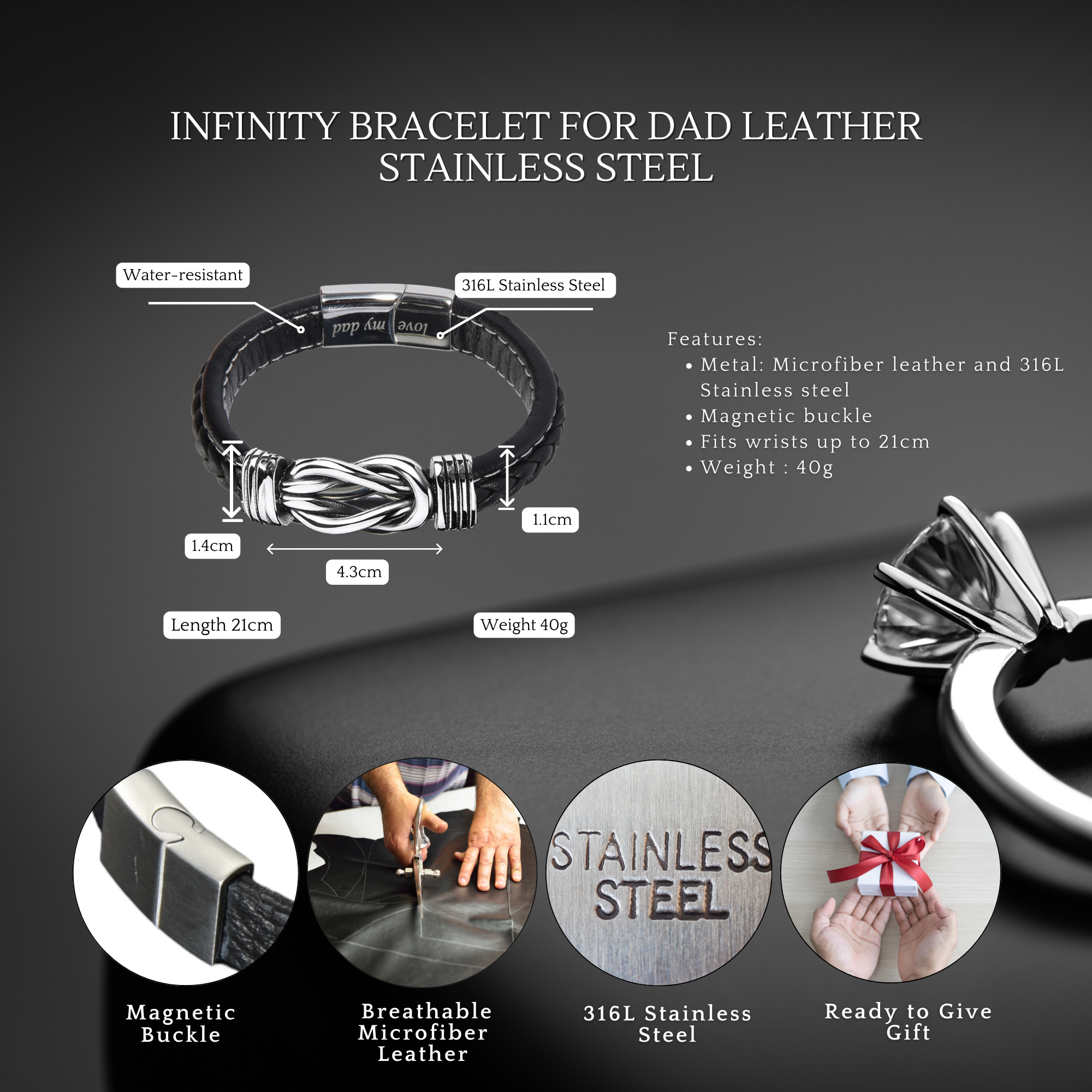 Stainless Steel Infinity Bracelet For Dad Engraved Leather with Message Card Gift Box