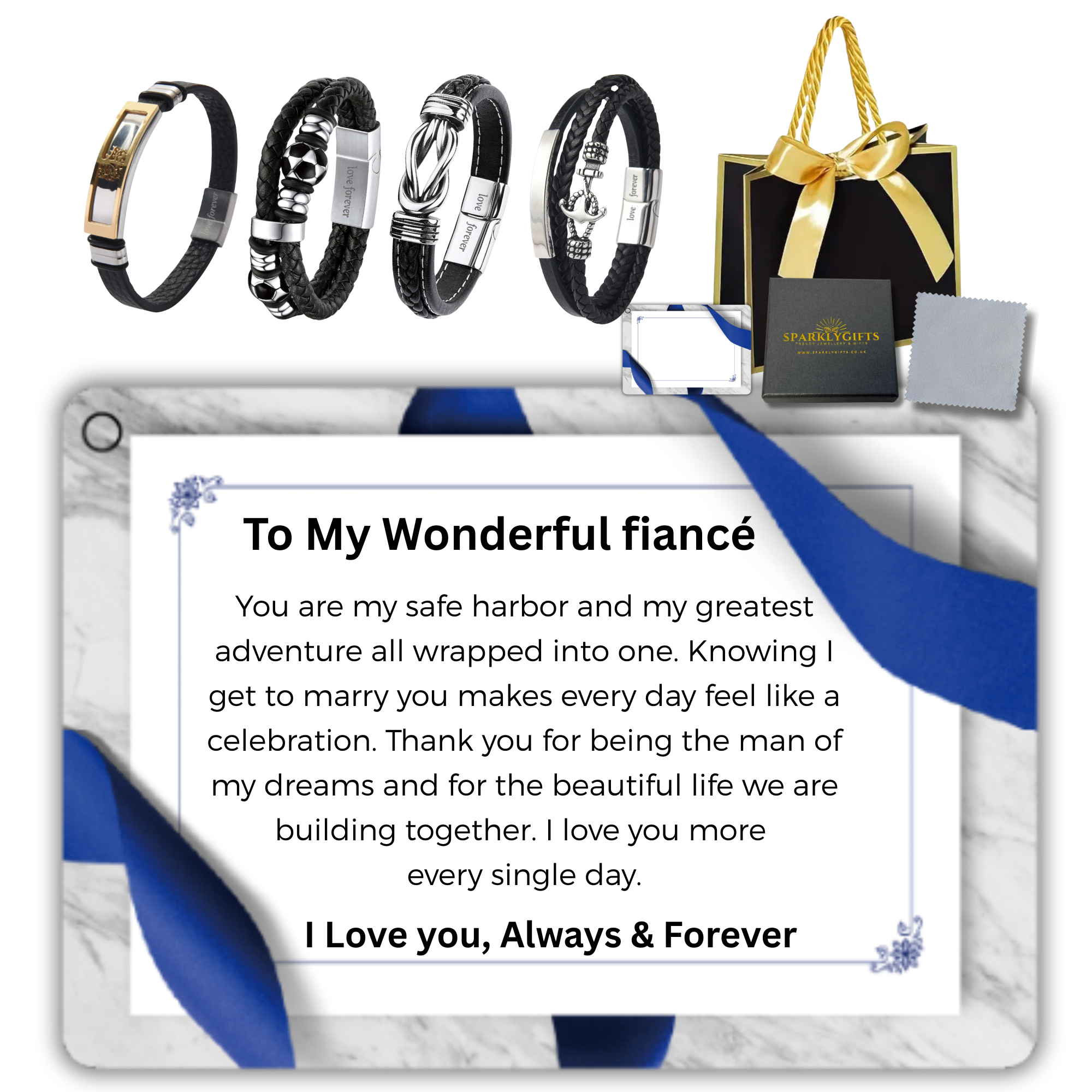 • Message Card ( 56mm x 80mm) ” To My Wonderful Fiance, You are my safe harbor and my greatest adventure all wrapped into one. Knowing I get to marry you makes every day feel like a celebration. Thank you for being the man of my dreams and for the beautiful life we are building together. I love you more every single day.  I Love you, Always & Forever